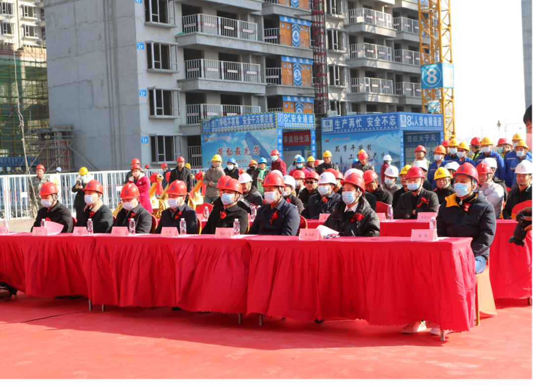 12月29日上午10点,晶宫天玺·尚都安置区项目部内外彩旗飘扬,人声鼎沸,在热闹喜庆的礼炮鞭炮声中,临泉装配式建筑行业与晶宫天玺·尚都安置区项目迎来了具有特殊意义的时刻。 历经数百个日夜的精细打磨,项目封顶庆典隆重举行,临泉县政协主席、县政府党组副书记于群,县住建局党组书记、局长周道锋,县自然资源和规划局党委书记、局长刘高峰,县住建局党组成员办公室主任陈晓峰,县城南街道办事处主任崔小敏,副主任李晓新,晶宫绿建集团董事长、晶宫集团执行总裁刘立超,媒体代表及各界人士共同出席了本次荣耀封顶仪式,见证这繁华启幕的重要时刻。 从一块平地到完美封顶,从对美好生活的构想到如今主体工程的落成,每一个角落都凝固着晶宫绿建人的汗水。工程期间,各单位、各部门要求施工单位严格按照图纸设计及规范要求施工、过程检查中严格执行质量检验、安全文明施工等制度保障体系。用认真负责的心态来监管工程建设,做到安全文明施工管理、质量严格控制,最终把晶宫天玺项目打造成一座临泉的人居标杆。