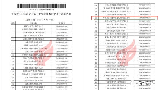 根据《高新技术企业认定管理办法》(国科发火〔2016〕32号)和《高新技术企业认定管理工作指引》(国科发火〔2016〕195号)有关规定,经专家对备案抽查企业审核后,现对安徽省认定管理机构2021年认定的第一批高新技术企业补充备案名单(详见附件)予以公告。